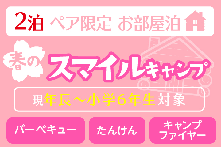 2泊★お部屋泊 初めてのおとまり、初めてのキャンプにオススメ!